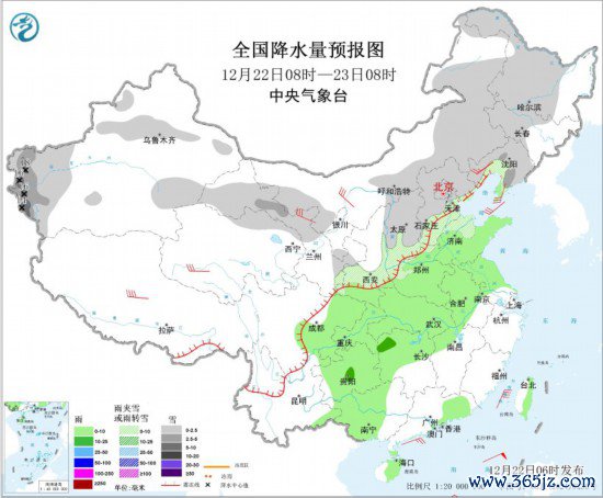 寰宇降水量预告图(12月22日08时-23日08时)